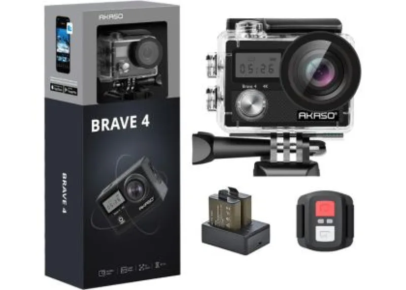 AKASO Brave 4 4K30fps 20MP WiFi Action Camera Ultra Hd with EIS 131ft Waterproof Camera Remote Control 5xZoom Underwater Camcorder with 2 Batteries and Helmet Accessories Kit