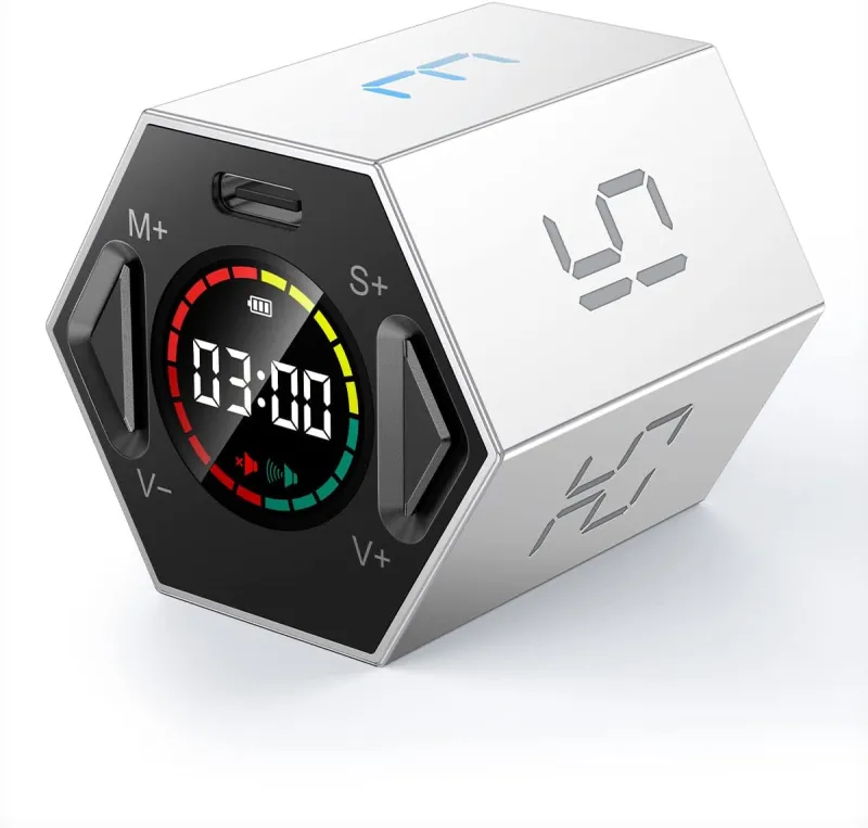 Ticktime Pomodoro Timer, Productivity Timer Cube, Hexagon Magnetic Flip Focus Timer, Mute & Adjustable Sound Alert, for Work, Office, ADHD, Study, Task, 3/5/10/15/25/30min & Custom Countdown