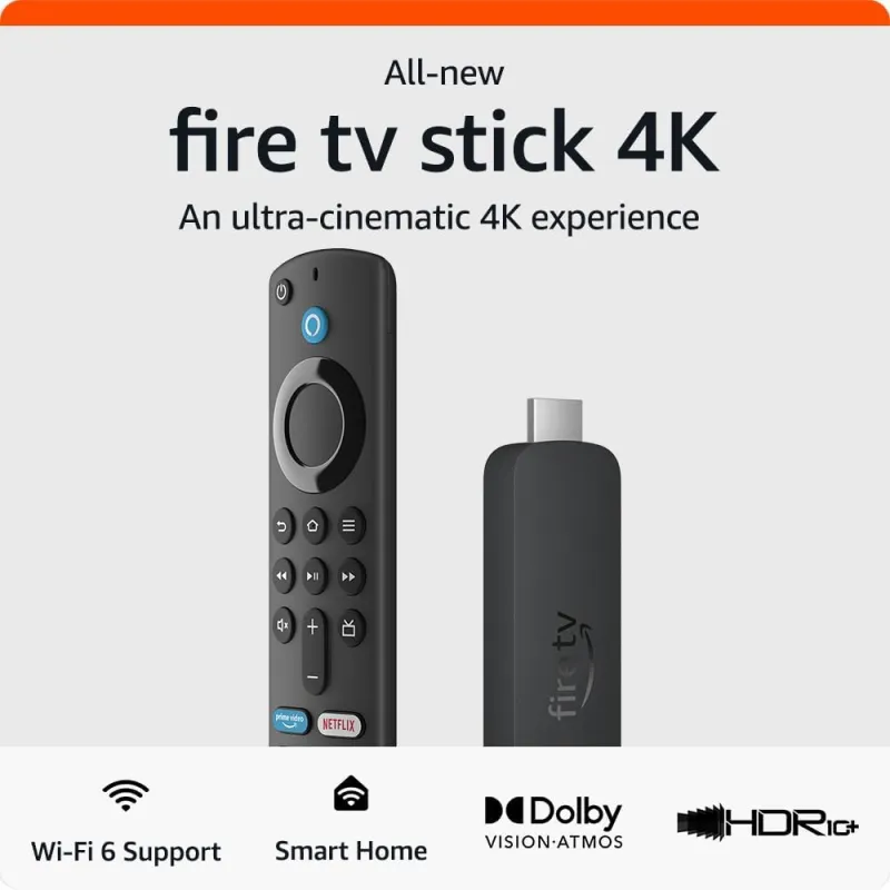 All-new Amazon Fire TV Stick 4K streaming device, includes support for Wi-Fi 6, Dolby Vision/Atmos, and free & live TV.