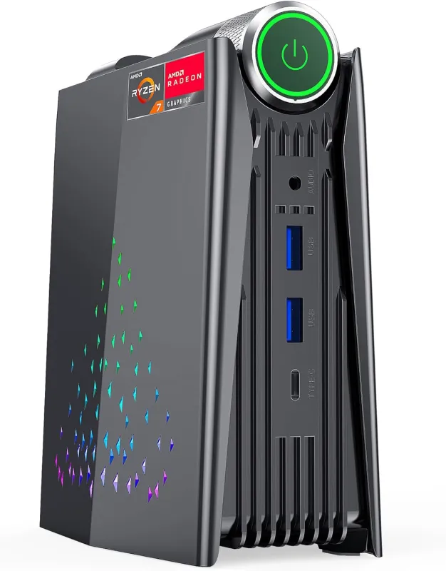 Introducing the ACE Gaming PC, a universal Mini PC with three modes: Silent, Auto, and Performance. It is designed to meet your specific needs for streaming, work, and gaming. The AMR5 Gaming Mini Computer is equipped with the AMD Zen3 Ryzen 7 5700U, boasting 8 Cores and 16 Threads, which delivers up to 3.4% better performance in multitask computing. The Mini PC's Radeon RX Vega8 Graphics can handle even the most demanding games. The AMR5 Mini PC's high-efficiency cooling system ensures optimal heat dissipation and top performance. Plus, you can choose from three lighting modes to create your desired atmosphere. With up to 32GB of DDR4-2666 RAM and 2x M.2 SSDs, the AMR5 Mini PC accelerates load times and doubles the throughput compared to a single drive. You can upgrade to a maximum of 64GB (2x32GB) of dual-channel DDR RAM and NVME/NGFF SSDs up to 4TB (2x2TB). Stay connected with the Mini Gaming PC's 1G RJ45 port and WiFi 6 standard radio. Experience boosted peak interface bandwidth, improved efficiency, and enhanced reliability, all with lower latency and minimal lag. Don't miss out on the incredible 43% discount and save $300 with our early Black Friday deals.