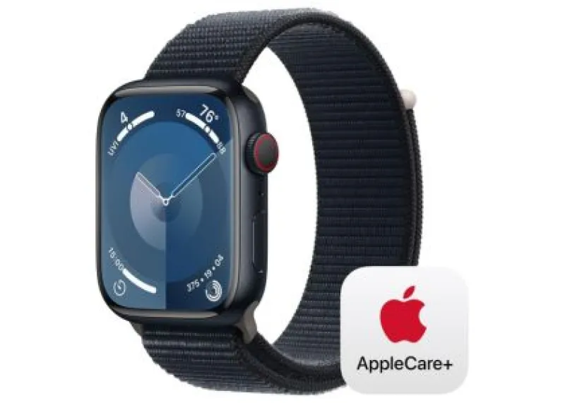 Apple Watch Series 9 [GPS + Cellular 45mm] Smartwatch with Midnight Aluminum Case with Midnight Sport Loop, Carbon Neutral with AppleCare+ (2 Years)